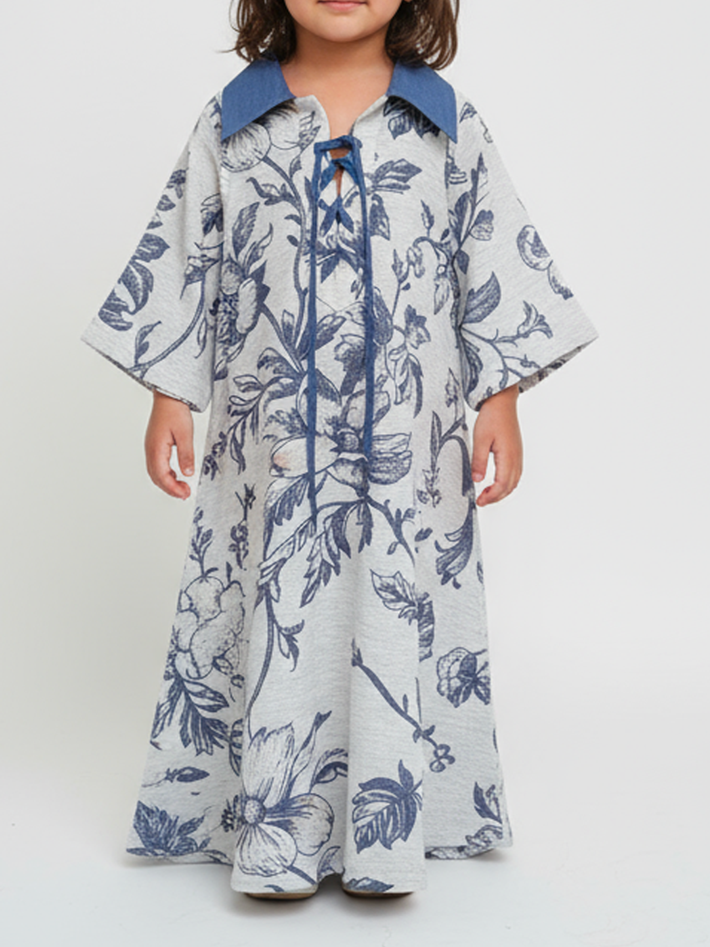 KIDS - RESORT WEAR - Tie Up Neckline - Blue Flowers