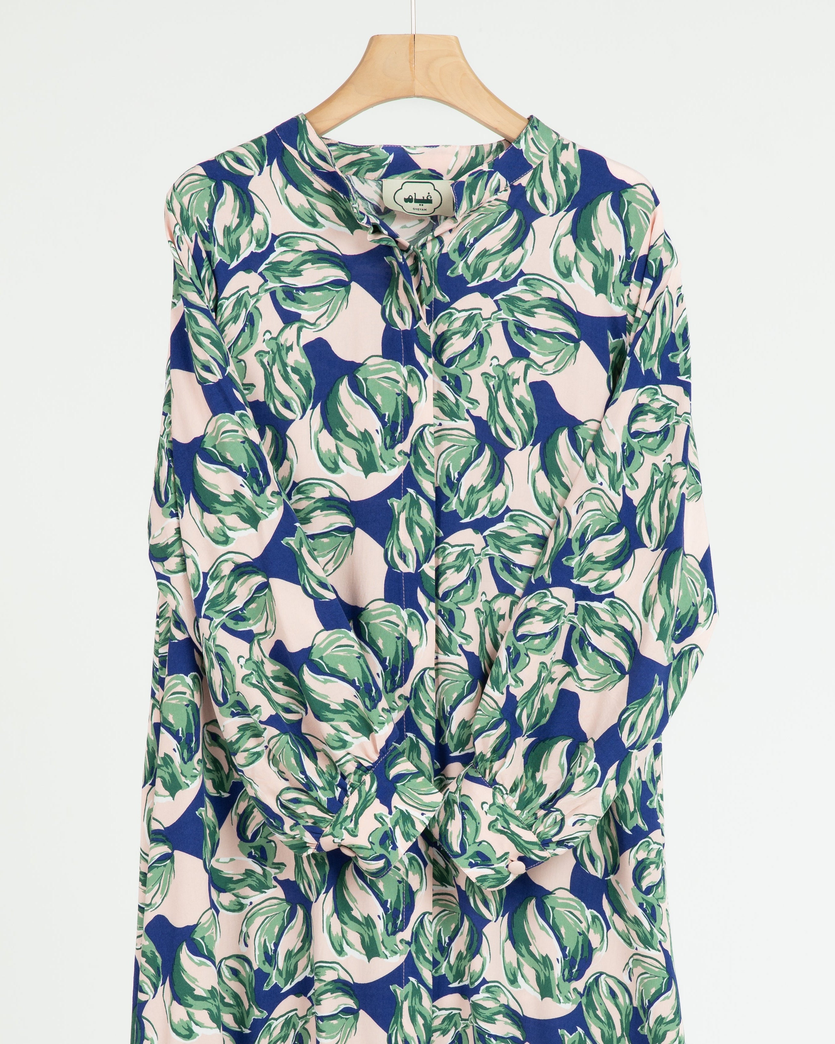 Cambric Cotton - Triple Ribbons jalabiya +Shailah - Blue Flowers