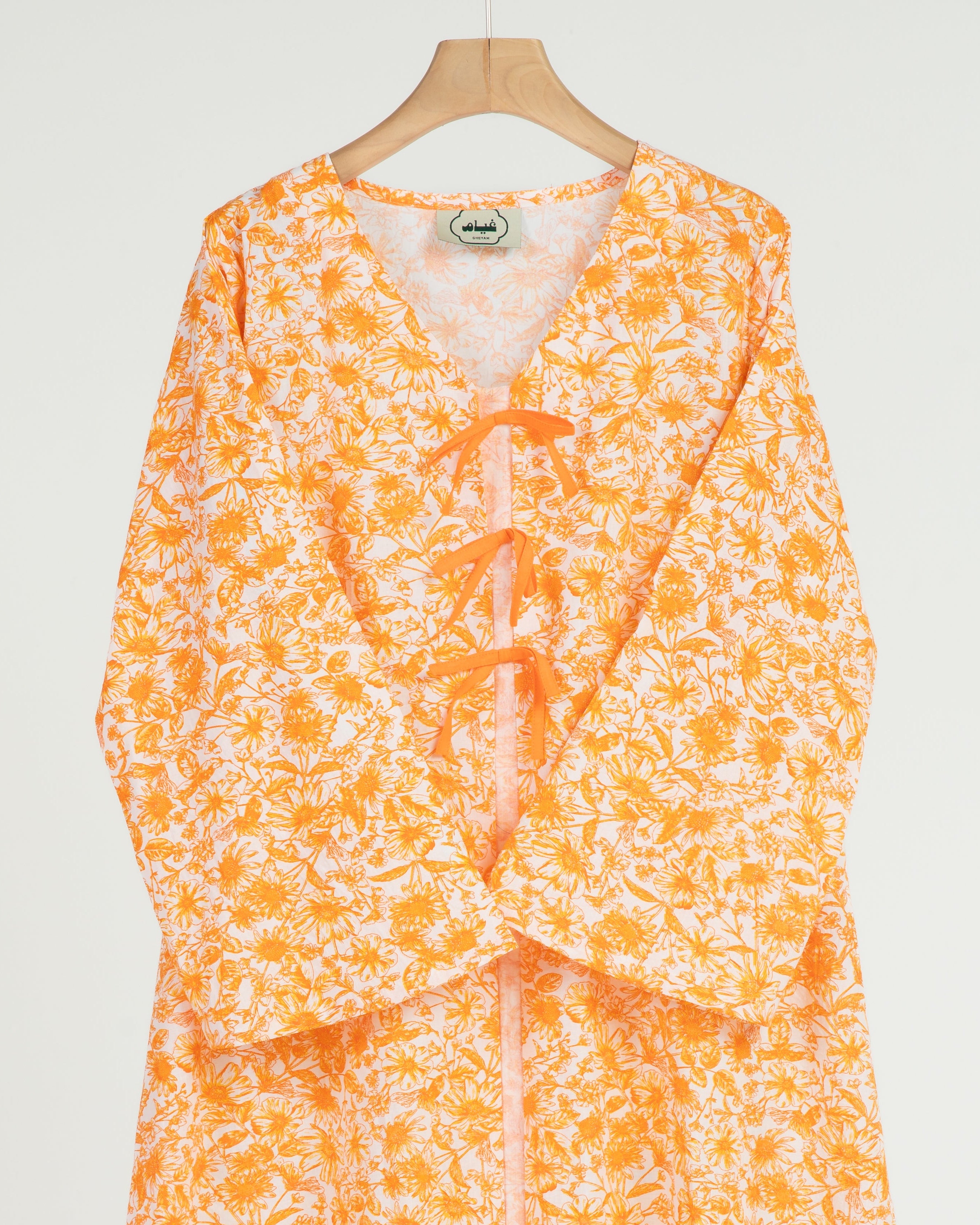 Cambric Cotton - Triple Ribbons jalabiya +Shailah - Orange Flowers