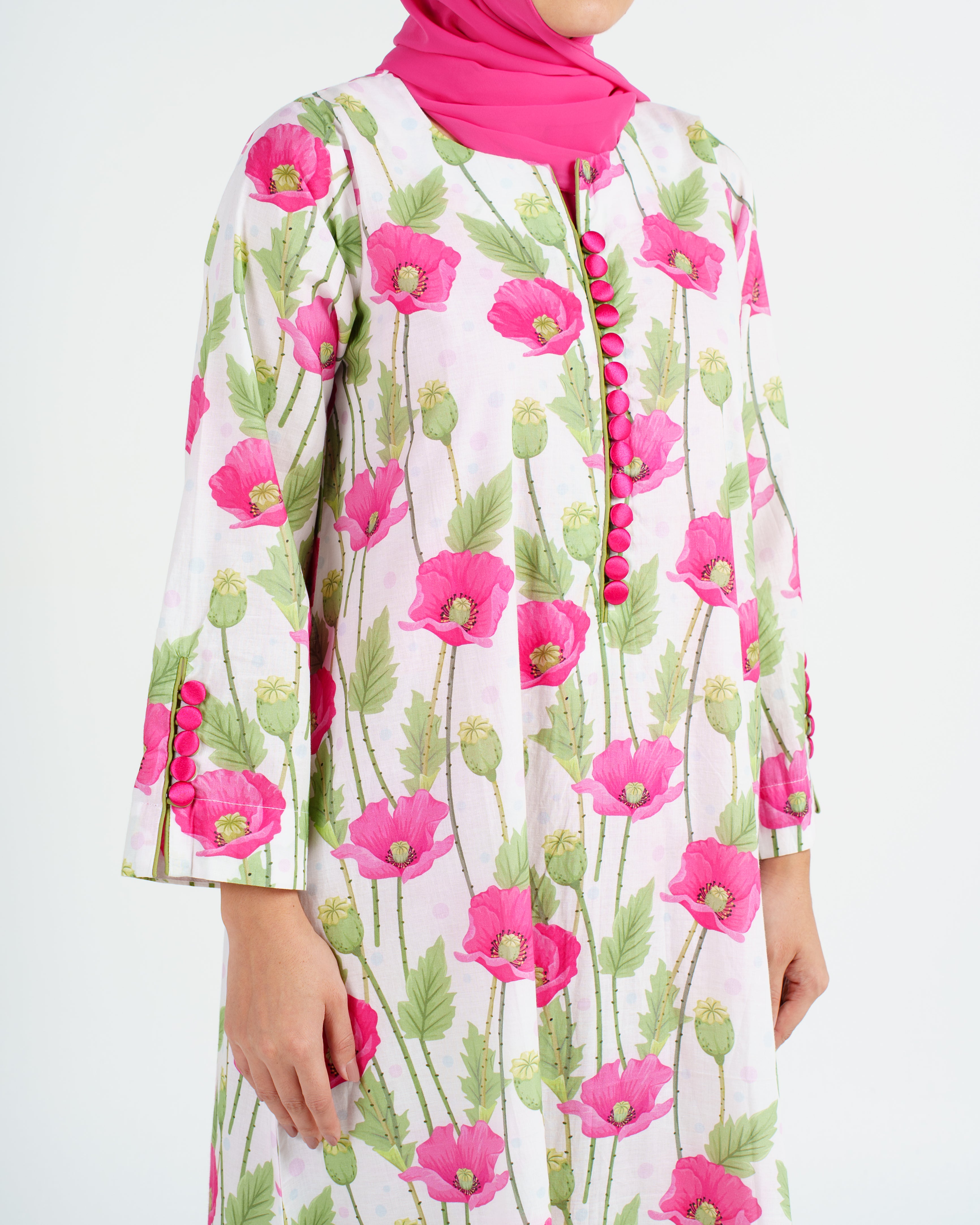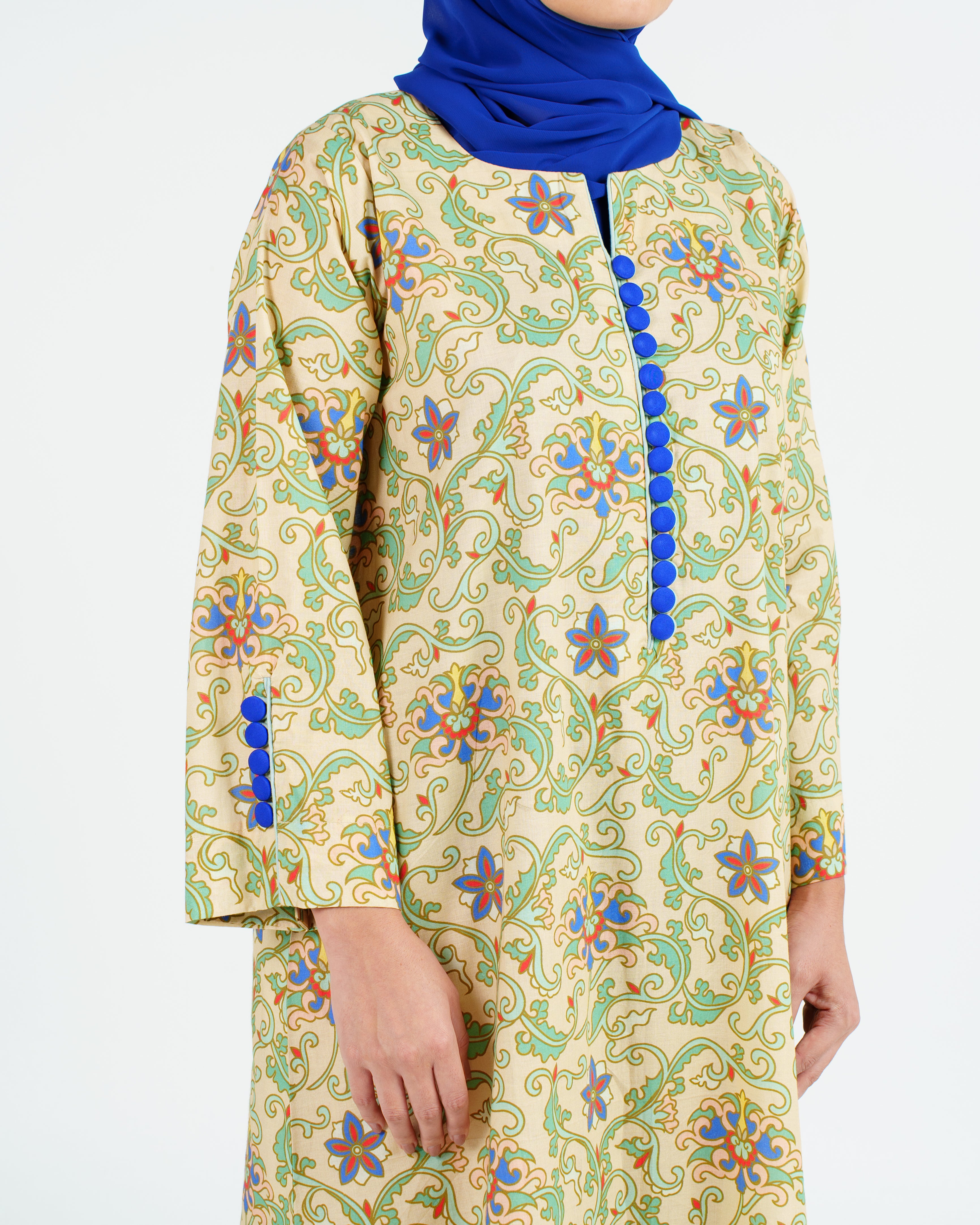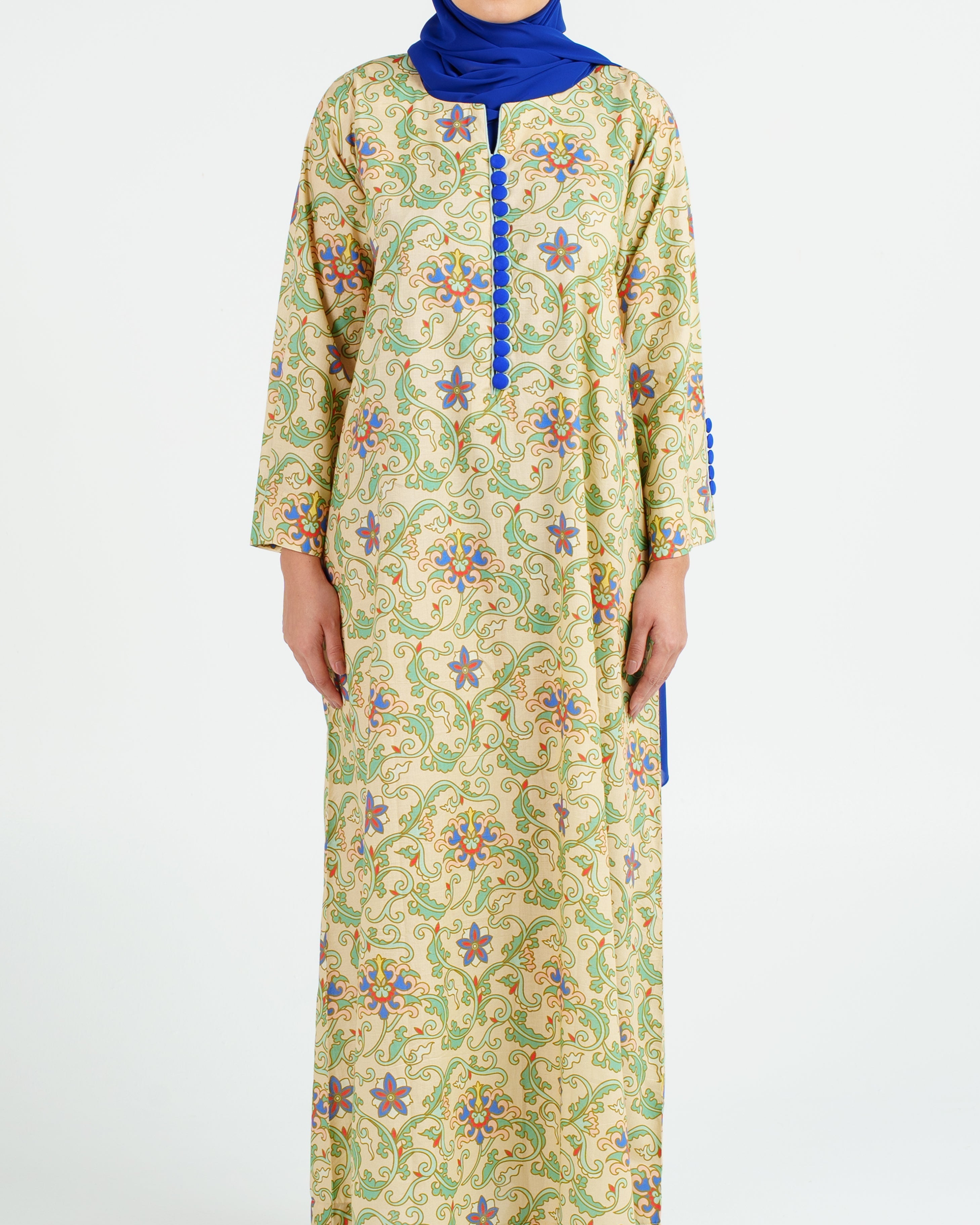 Indian Cotton Decorative Buttons Jalabiya - Ottoman Floral