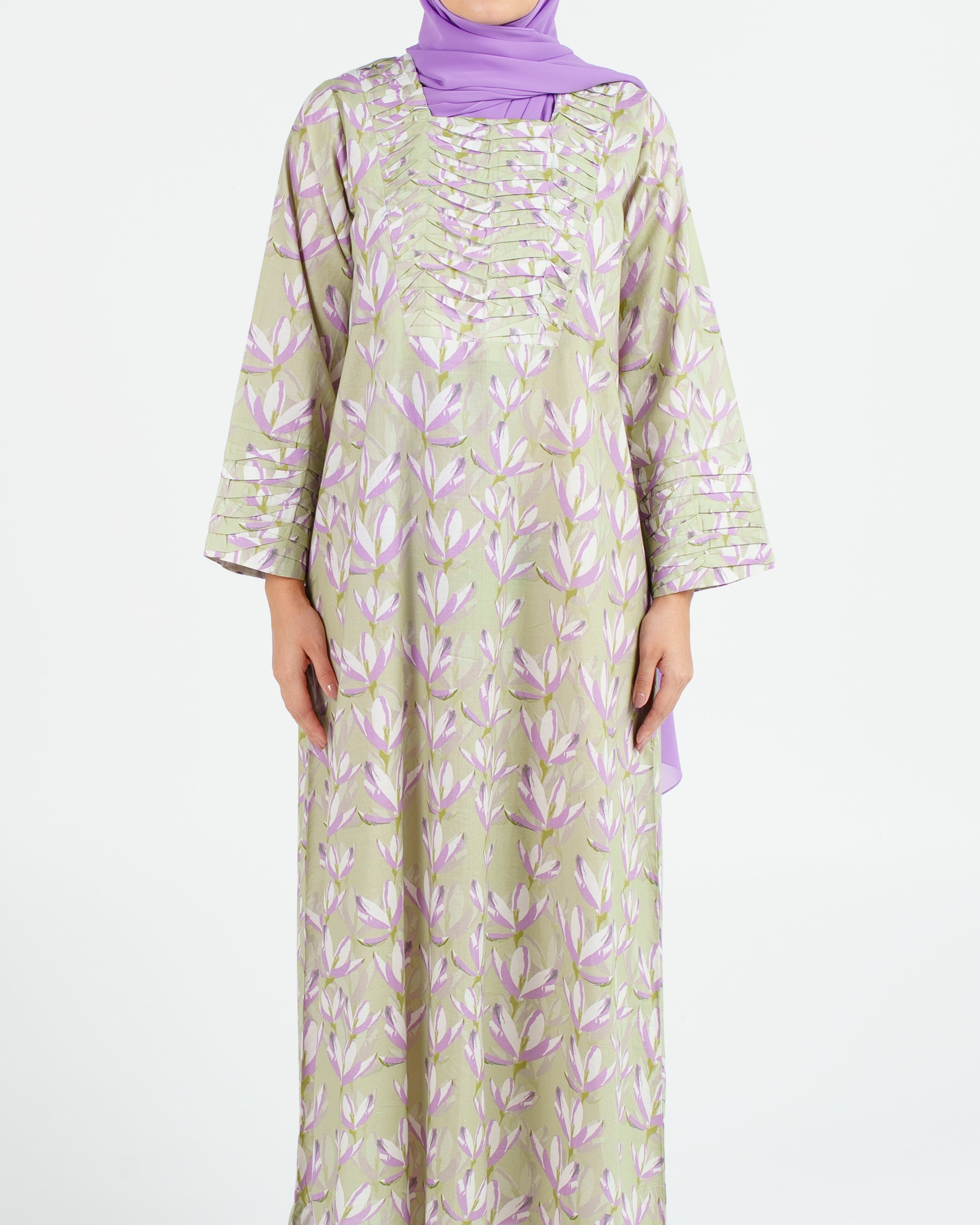 Indian Cotton Pleated Front Panels - Violet Poppies