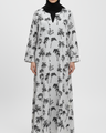 Cotton and Linen Blend Pin-Tuck Sleeves Jalabiya - Black Palms